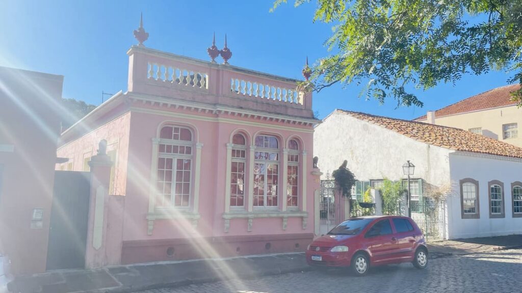 Impossível passar sem notar! Um casarão antigo com a fachada em vermelho vivo, no meio do centro histórico. A gente achou linda e super fotogênica.